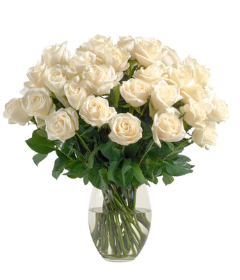36 breathtaking Long Stem White Roses! Traditionally, white roses mean purity, innocence, silence, secrecy, reverence, youthfulness, heavenly - what better way to say it, but with Roses? Our roses are specially grown to be large, deliciously plump and robust, and long-lasting to emphasize the statement you want to make to their recipient. Includes three dozen exceptionally stunning and vibrant fresh-cut, Long Stemmed White Roses accented with fresh greens.