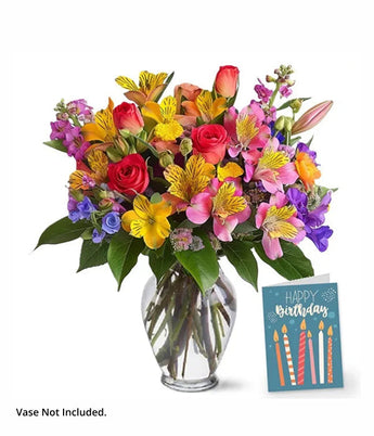 Celebrate birthdays in style with the Birthday Designers Collection bouquet! This vibrant arrangement is carefully crafted by our expert floral designers to add a festive and personalized touch. Featuring a mix of at least 18 fresh stems or a single type of flower like roses, it’s the perfect birthday surprise for someone special.
